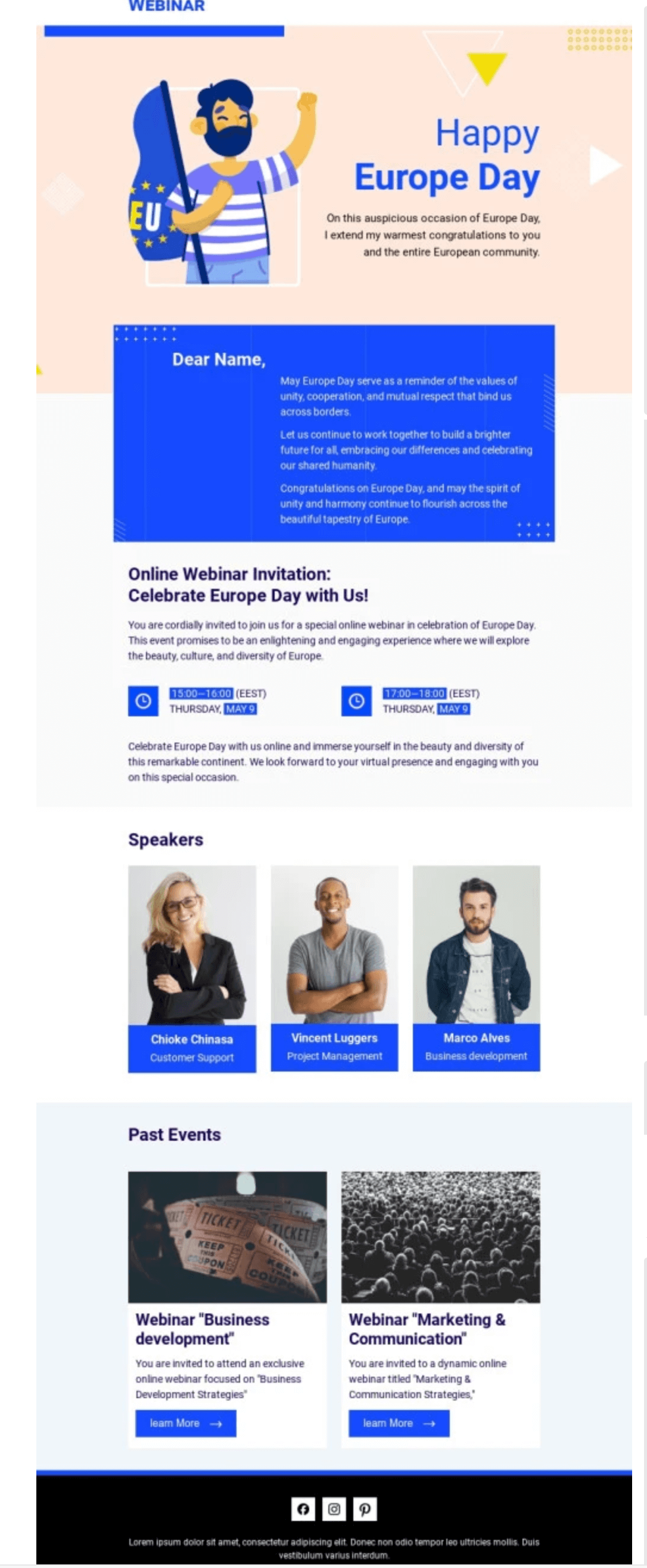 - Pre-Built Templates: Select from ready-made newsletter, promotion, event invitation templates and much more.
