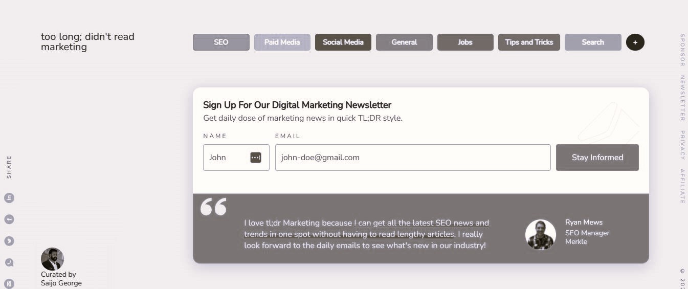 Curated by Saijo George, TL;DR Marketing is the perfect newsletter for those who dread long, text-heavy content.